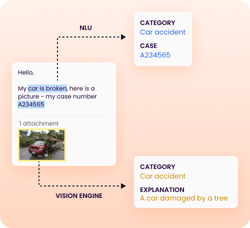 With our Vision Engine, accurately classify your images, extract information from even the most complex document formats, and automate the processing of your customer requests.