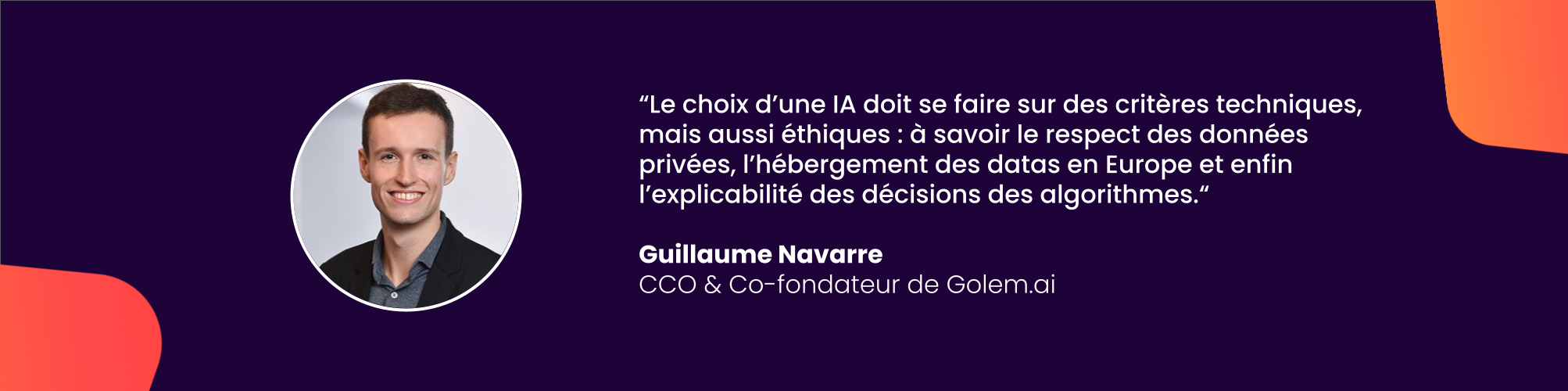 Concrètement, il est important que les partenaires numériques (start-ups, éditeurs, ESN, opérateurs…) retenus dans des projets futurs, en particulier dans le domaine de l’IA, soient garants de l’indépendance de leurs clients et des données en général. Le choix d’une IA doit se faire sur des critères techniques, mais aussi éthiques : à savoir le respect des données privées, l’hébergement des datas en Europe et enfin l’explicabilité des décisions des algorithmes.